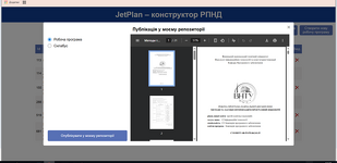 Для зручності роботи з готовими робочими програмами та силабусами дисциплін, в модулі "JetPlan" додано функцію автоматичної публікації робочої програми та силабуса в модулі "Персональний репозиторій". Якщо програма не має зауважень, узгоджена (підписана електронними підписами), її легко опублікувати в персональний репозиторій викладача шляхом натиснення кнопки ...