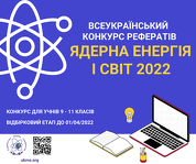 Українське ядерне товариство запрошує 9–11-тикласників взяти участь у Всеукраїнському конкурсі рефератів «Ядерна енергія і світ» 2022 року.
