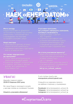 НАЕК «Енергоатом» оголошує проведення Онлайн школи у 2021 році! Цей освітній проєкт покликаний залучити активну студентську молодь та молодих фахівців усіх напрямів та спеціальностей до ознайомлення із сучасним станом і перспективами розвитку атомної енергетики України.