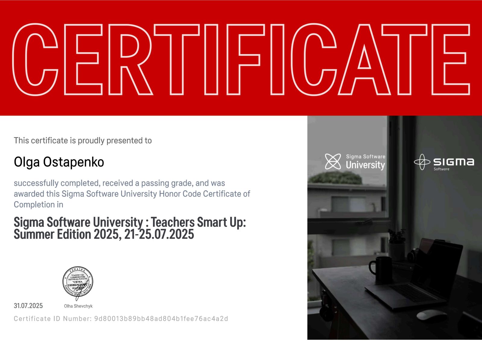- Хобі: Психологія, коучинг, технічна англійська мова, штучний інтелект, кіберзахист та кібербезпека.
