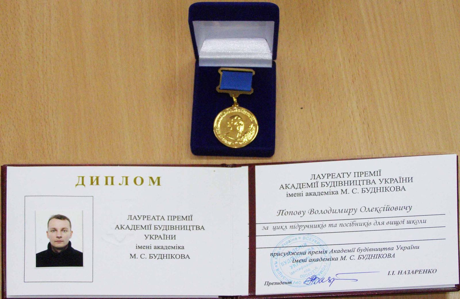 88. Готується до друку: Попов В.О. Раціональні конструкції навісів для пасажирських перонів АТ "Укрзалізниця" / В.О. Попов // Сучасні технології, матеріали і конструкції в будівництві. Науково-технічний збірник. Вінниця, ВНТУ, 2026-2. - Портфоліо: У 2019 році нагороджений медаллю Академії будівництва Україниім. акад. Буднікова за цикл підручників та посібників для вищої школи.