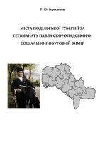 Монографія [Електронний ресурс], Вінниця : ВНТУ, 2025, 199 с. ISBN 978-617-8163-70-9 (PDF). У монографії проаналізовано особливості соціально-побутового життя міського населення Поділля періоду існування Української Держави П. Скоропадського (квітень – грудень 1918 р.). Висвітлено проблеми житлово-комунальної сфери та міського благоустрою, санітарно-епідемічного становища, рівня добробуту, дозвілля, боротьби з безробіттям.