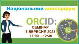 6 вересня 2023 року об 11.00 у рамках співпраці з консорціумом науково-технічна бібліотека пропонує долучитися до семінару, підготовленого ДНТБ України спільно з orcid, про можливості членства у консорціумі.
