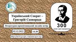 Науково-технічна бібліотека ВНТУ запрошує вас 2 грудня 2022 року о 14:30 на літературно-просвітницький вечір, присвячений 300-річчю видатного українського філософа, просвітителя-гуманіста, поета, музиканта, педагога Григорія Савовича Сковороди.