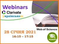 28 січня 2021 року о 16:15 науково-технічна бібліотека запрошує вас на безкоштовний вебінар від компанії Clarivate про можливості оновленої платформи Web of Science.