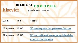 Науково-технічна бібліотека запрошує вас на вебінари українською про роботу з базою рецензованої наукової літератури Scopus та бібліографічним менеджером Mendeley від компанії Elsevier.