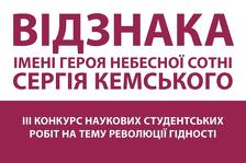 Продовжено прийом заявок на участь у ІІІ Всеукраїнському конкурсі студентських наукових робіт на тему Революції Гідності у межах здобуття Відзнаки імені Сергія Кемського, ...