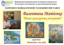 Культурно-мистецький та просвітницький центр запрошує відвідати нову художню виставку Валентини Матієнко «Рими кольорових почуттів»