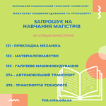 Маєш диплом бакалавра, спеціаліста чи магістра? Обираєш спецільність для вступу в магістратуру? Факультет машинобудування та транспорту ВНТУ має декілька варіантів саме для тебе!